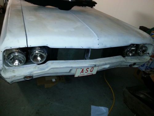 1965 cutlass convertible, 2door, automatic, 330 engine, all glass intact, needs convertible top cover. The convertible top motor works and frame goes up and down. Nice bucket seats in front and has the bench seat in rear, automatic with floor console shift with working tach,, front floor pans and trunk pans where replaced sometime before I purchased it. Has new 15 gallon fuel cell in trunk but still have original tank on hand, new rubber gas line from tank to engine(original gas line still there), new fuel pump, new carb (4 brl), new brakes front and back, new brake drums on rear, new white wall tires, new carpet (not installed), new rear arm rest covers top and bottom (not installed), new headlights (4), new headlight switch, new brake light switch, new turn signal relay flasher, new turn signal switch in steering column, car starts runs and drives. Have taken it on trips around town and neighboring city. instrument cluster went bad and has been replaced with another one. Everything works on the replacement cluster. Still have the original cluster and comes with car . Car sat for years before I purchased it..Dont see many of there cars around. Clear ohio title. Previous owner attempted some of the body work. Would be a nice car to restore, just dont have a big enough place or the resources. Front door panels would need to be replaced but the rear are fine. All the trim and emblems had already been taken off car so the car is ready for the bodywork. All the trim is in boxes, some is pitted more than others but nothing that is rusted through on them. Wires from under dash to rear of vehicle has been replaced with new color coded wire to match original. Headlight, taillights, turn signals and brake lights work. Not sure what all had been done to the vehicle before I purchased it. Just trying to state what I have seen and all the items I replaced on it. Have all the receipts for all the items I have replaced. I have several cutlass parts catalogs that deals with strictly cutlass cars. Also have original Oldsmobile shop manuals that cover just about everything that you would need to know about working on the vehicle. There are several boxes of parts for the car thats not installed on the car so keep in mind when arranging pickup or shipping. Everything might fit into car for transport but thats up to the buyers discretion. Any questions just ask. Ill try to answer any question that I have knowledge of. ******NO RESERVE*******
