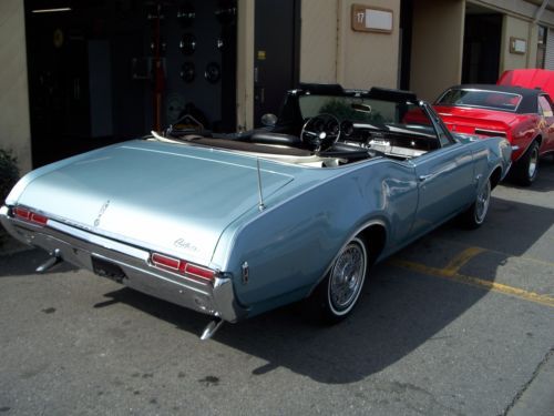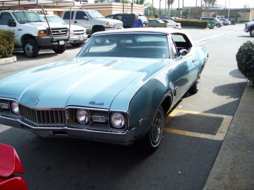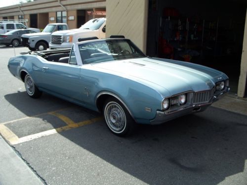1968 Oldsmobile Cutlass "S" Convertible.Fairly recent Mechanical/cosmetic restoration.{3-4yrs}Finished in correct Chrystal blue metallic ext.,with Deluxe black leatherette factory bucket seats.Center console with GM Turbo-hydro 3 speed auto.Power steering/power brakes/and power top work perfectly.2 tires are 70%,2 are 95%.Car is driven fairly regularely,for short distances/shows,as it is a somewhat modern car.This car is coming out of a fairly large vintage/classic car collection,as we are going in a new direction.Time to "cull the herd",and regretibly, this is one.Priced very fairly for what this is.Not a tarted up car,or a "tribute",but a well restored,authentic Olds Cutlass Supreme V8...Please....Do not ask the reserve.People that do NEVER,EVER buy the car!!!Simply bid what you`ll pay!PERIOD!..Car is located in the L.A.area,and a qualified buyer may inspect the car PRIOR to close of sale.This is a very pretty,rust free driver plus quality car.A strong 8 on a 10 scale.Ready to go.Best of luck to all.