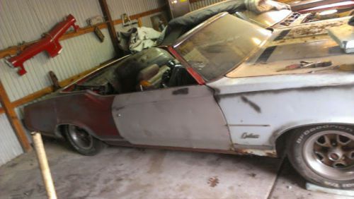 Car is rough, someone cut a floor out of another cutlas and welded it in. Car is missing a drive shaft and gas tank. Car ran when i parked it a year ago in a garage. Has been garage kept ever since. Back seat is missing, Have extra parts in trunk, all parts will go with auction. 350 rocket with a 350 auto tranny. bench seat in the front. TLC needed on body, soft top cage is rotted, has no material top. Car not in drivable condition will need to be towed. Will try to add more pictures before auction ends.