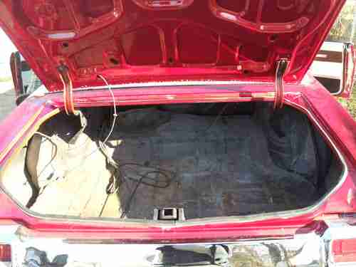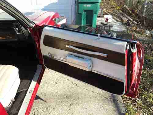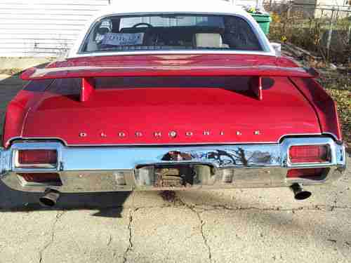 I'm selling a 1971 Oldsmobile Cutlass Supreme 2 door coupe with 71589 miles on car but motor has 3000 miles on it since rebuilt has a 1968 400 cu in big block bore .30 over has 10.5 to 1 compression pistons engine was balanced double timing chain and gear roller tip rockers camp cam new oil pump mondello windage tray aluminum edelbrock performer intake has a holley 650 carb new fuel pump hei distributor has C heads with 3 angle valve job they resize guides new valve seats new valve locks heads have been modified welded exhaust ports has headers and flow masters dual exhaust has cut out bumper with chrome trumpet tips has a little paint on them has a 350 turbo trans with a 2500-2800 stall converter b & m shift kit transmission cooler motor runs great has lots of power has stock rear end and sway bar has front disc brakes has brand new door handles missing driver side lock has a custom paint job it is house of colors candy apple red with a transparent hurst olds theme it changes when light hits it paint and lines are straight does have few bubbles in paint around top and trunk and rear quarter not sure why it bubbled would still take car to car shows and have got trophies for car has a spoiler wing on back of car also has a brand new vinyl top this year interior has newer carpet about 3 years old dash is in good shape someone did cut out dash for cd player has summit oil pressure temp/ amp gauge has newer tray in back window front bench seat is about 3 yrs old arm rest needs a bolt i have new head rest covers that come with car head liner door panels and back seat are original and could be replace has tilt sport steering wheel have seat belts come with car not installed car has 17 in aluminum eagle alloy rims car can be seen on youtube if you type in jimmybutterknifes in search i also have paper work for motor work and heads i have lots of money invested into car any questions please call five17 seven49 four002 thanks