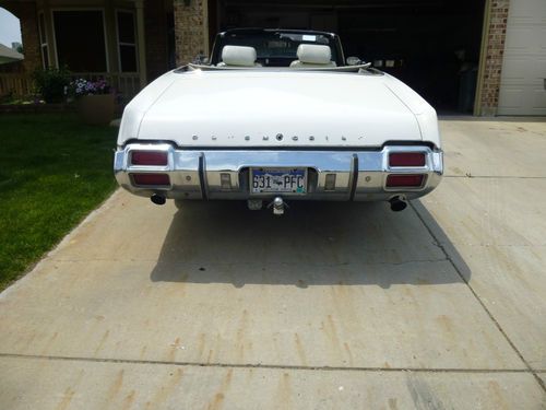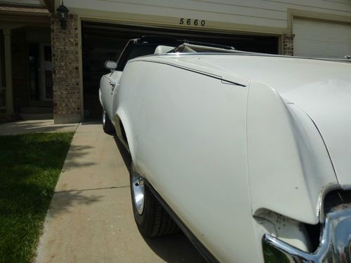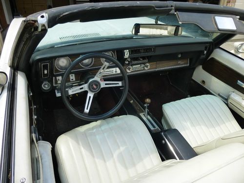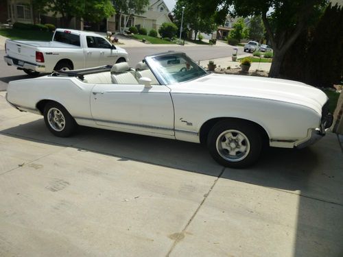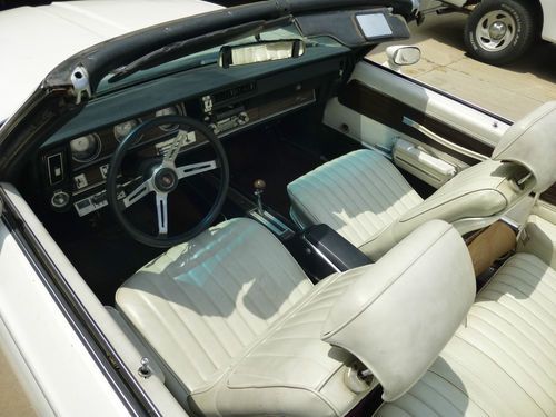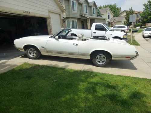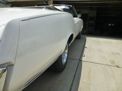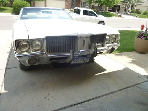 1971 Olds Cutlass Supreme Convertible SX 1 of 357 built Y-79 performance package 455, turbo 400, with less than 800 miles on the rebuilt engine, No leaks. This was a one family owner car, I bought from the original owners grand daughter. She had the engine completely rebuilt (Spitfire of Denver machine) to the tune of $7000.00 and yes, it was too much but it runs excellent. The carburetor was swapped out in favor of a re-manufactured but original is included and its whats in the back seat. This car is and was dirty because it had sat for 7 years after the work was completed. I wiped off a portion of the valve cover only but wasnt going to try and fool anyone with a complete detail. Its been sitting but I changed out the gas, plugs, and fuel pump and this car flat out runs. You can step on the gas and without hesitation it will spin the back tires as a rebuilt 455 should with only an rv cam installed. Has rally steering wheel, sport mirrors, rally gauges ( tic toc tach and gauge package tach works as does oil and temp, gas is pegged at full) bucket seats and center console. The power top works going down but you need to help it going up. Air conditioning does not work as there is a breach in the line, power steering and power disk brakes. This car runs and drives excellent with no pulling to one side squeaks and or rattles but needs as you can tell a cosmetic restoration. A nice smooth ride and what you expect from an Oldsmobile. I will add a photo of the trunk when my mechanic friend opens it as the key did not work and it was drilled to gain access to the mechanism. There is also no rust in the trunk as there is none in the floor or frames. There was rust that looked like was previously repaired around the rear wheels and maybe a little bit below the front fenders. No tears in the seats, no ashtray door, CB comes with the car via the 70s, and whoever put the speakers in the door didnt think things through and had to take off the window handle to roll it down (included). Rear bumper needs to be replaced ($324 on here) or rechromed and top needs replaced. real glass rear window is good. Like I said it needs cosmetic but mechanically, its is very very solid and strong! Any questions please ask, look at the photos, and or know that you want the car before you bid. Considering the rarity of the car, I should not be selling at NO RESERVE but want it out of my garage because I dont drive it, dont want to restore it as I drove it as is, and need the space.