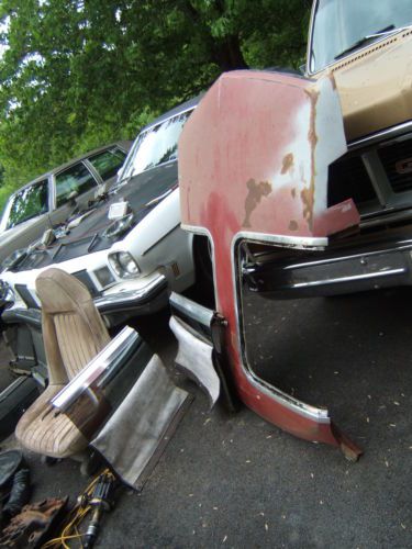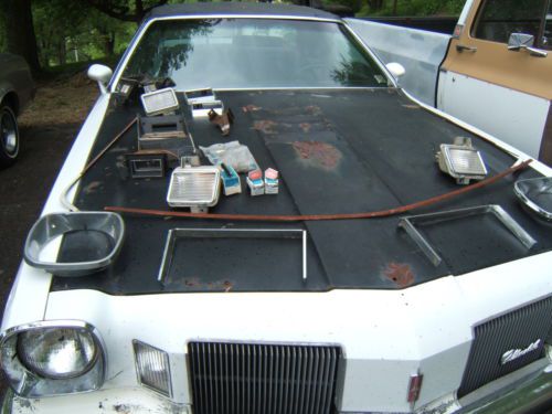 I bought this car in 2007 as an all original 65K mile garage kept car to be my wife's daily driver. In the fall of that year she hit a deer, spun off the road and over a bank and came to rest in a creek bed with a big oak tree caving in the roof. So... the car sat covered up in my yard while I was trying to decide what to do with it. I had intentions of fixing/restoring it some day after I completed a couple other project vehicles I was currently working on so I began to stock pile parts for it. A couple years later I became in need of a winter vehicle so I jacked the roof out good enough to make the glass fit and started driving it again. I drove it for 2 winters but now it is just sitting in my yard again. I have accumulated a lot of very nice parts for this car but now I find myself more in need of cash than in need of this car. Car comes equipped with Edelbrock Performer intake, Flowtech headers and Summit dual exhaust. The last year that I drove it I had installed new front brake pads and rotors, brake booster and replaced the point distrubutor with a billet HEI distributor. Used parts I have for it: grills, grill moldings, parking lights, headlight bezels, wheel well moldings, vinyl top trim moldings, rocker moldings. NOS parts: Moog front springs, sail panel emblems, 1 door molding, chrome rear sway bar and brackets. I have a rechromed lower front bumper. I have a working dash clock and the bezel to add it. Hurst Olds parts: Louvered hood, T-top roof, Hurst Hatches, swivel buckets, console, dual gate shifter. I still have all of the original parts from this car that will go with it if the buyer wants them: intake mani, exhaust mani's, air cleaner, hood, distributor. Floors and trunk of this car are solid. Only rust is a couple small spots on the bottom of the drivers quarter panel, front of the hood and the trunk lid is shot. 350 engine and turbo 350 trans run good. Transmission was rebuilt before I put it back on the road for a winter car. Brakes are a bit suspect (right rear seems to be stuck) so I would recommend trailering this if you have to transport it. I have a set of 15 inch rally wheels that I would negotiate a price for if you win this auction. E-mail any questions.