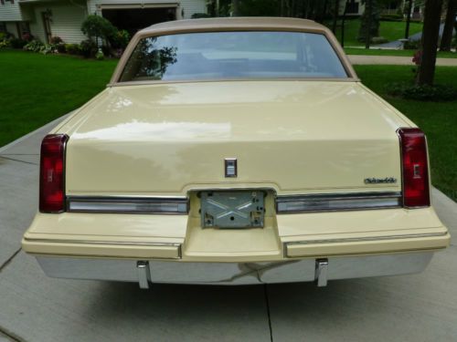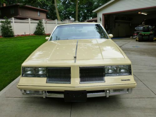 1986 Cutlass Supreme Brougham. One owner, power seats, sunroof, tilt, cruise, AM/FM cassette, air conditioning, power steering, power brakes. 307engine, auto trans. This car is all original, except for the battery. 23,000 original miles. This car has never seen salt, and very rarely seen rain. It is a perfect example of a very well maintained, low mileage original car. This car is very clean, inside and out. Never smoked in, and has not had pets inside either. The car looks as it did leaving the factory in 1986. Original spare tire, original paint, never in an accident, never any bodywork. Nice color combo. This car is beautiful.