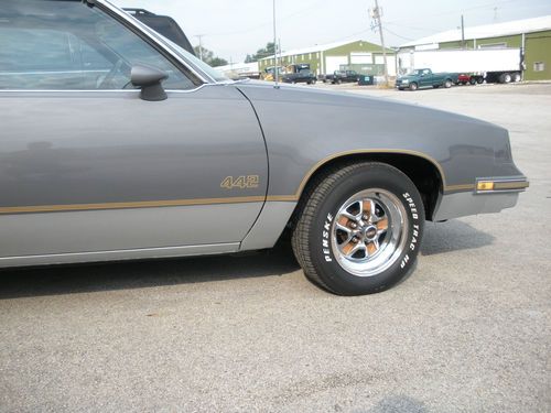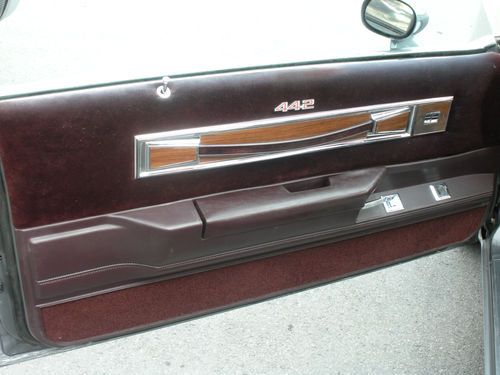 1986 OLDSMOBILE 442 in very good condition.it is all original except for paint,which was redone last year in base coat clear coat,wet sanded and buffed.all trim,door handles,mirriors,tailights,side windows were all removed prior to painting.all factory decals were replaced after painting.factory am-fm radio,t-tops,automatic transmission,power windows,door locks,tilt wheel,air condition and it works.origonal trunk matt and spare tire and jack in trunk.new dual exhaust.interior is in in very good condition,no rips or tears.wheels and tires are in good shape,lots of tread left and no rust on wheels.power antenna and fuel guage do not work.car has 96160 miles looks to be actual but no documentation on this. any questions please send a email and I will get back to you as soon as possible.thanks and good luck bidding.