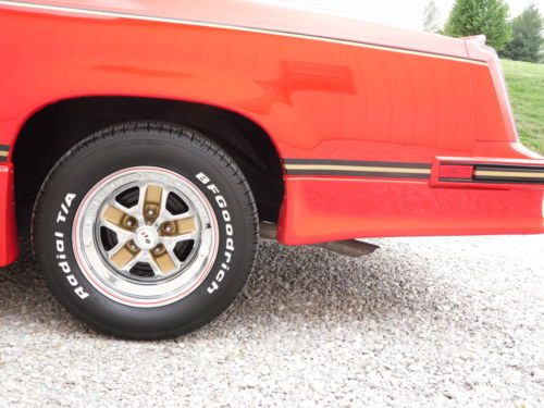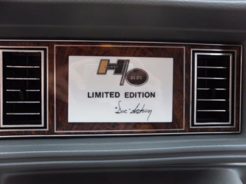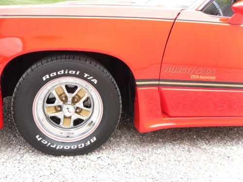 Hi. Up for bids today is something that does not come up for sale very often. This is a 1988 Oldsmobile 20th Anniversary Hurst/Olds Aero Commemorative. In 1988 Hurst did not deal directly to convert Oldsmobiles with General Motors. Instead you were offered this special aero kit which included the ground effects with rear spoiler, special black and gold striping, and Hurst/Olds name badges. Most kits were sold and never registered. The only way they could be registered is if you installed them on a 1988 Cutlass. No other year car could be registered with Doc Watson at Hurst. When you registered it, you sent in your VIN and then Doc Watson would send you back a special silver decal for you car with your car number on it. This car is #64. I have yet to see a higher number. Some cars were sent to Hurst for conversion where Doc Watson would install your kit for a fee. Others were converted by their owners which is what happened in this case. With the flexibility to do almost whatever you wanted as long as you registered it and used the aero kit, you were very free to build your Hurst/Olds about any way you wanted, hence the color red which my dad is partial to. It will probably be the only red Hurst/Olds ever built. In 1992 my father purchased this gray 1988 Oldsmobile Cutlass Supreme Classic Brougham. It was a one owner local car with 62,000 miles on it. It had the big speedometer in it at the time with no gauges. He switched it to a specially prepared rally pack guage cluster with a 160 mph speedometer that was set to zero. This odometer now reads about 13,500 miles. Hence the whole car actually has about 80,000 miles on it. It hadn't been home a week when we began to change everything on it including the driveline, interior, and obviously the color. DRIVELINE: Despite there being nothing wrong with the 307, he decided he would rather have a 455. I think it was a 1969 block, but can't remember. It has "C" heads and a Competition Cams camshaft. The cam is part number 42-228-4 if you want to google and look up the specs. He did not want to build a racecar. The block was bored .030 over and high compression pistons were installed like you would find in 1970 Olds 98. Nothing really fancy about the rebuild. He just wanted something reliable, easy to start, and would support the power brakes and run the ice cold air conditioning which is what it does. It did receive a pair of the W and Z exhaust manifolds to breath through a true dual exhaust with no cats exiting through a pair of NOS 1983 Hurst/Olds mufflers and tailpipes. It has nice tone. The air cleaner is also from a 1983 and sports the rare dual snorkel air cleaner set up. The original 200R4 transmission was removed, rebuilt, and upgraded with the heavy duty input shaft and clutch packs. It also got a shift improver to help firm up the shifts. The ring, pinion, and carrier were pulled and replaced with a posi trac and 3.73:1 gearing. INTERIOR: The interior was changed out of a 1984 Cutlass Calais and is in pretty good condition. We upgraded to this bucket seat and console. I also added the Hurst Lightning Rod shifters. EXTERIOR: You will notice he also had me add a Hurst/Olds hood scoop from the 1983 or 1984 era. The original Hurst/Olds emblems that were supplied in the kit were tossed in favor of some custom made decals similar to the ones also find on the 1983 and 84 Hurst/Olds except they say "20th Anniversary" and are done in a black and gold shadow lettering. The decals really look good against the red paint. The paint is a Chevrolet Lumina red from the early 90's. It was painted in Deltron single stage and has held up pretty good. It could probably use a light buffing, but most folks think it looks awesome like it is. THE CAR OVERALL CONDITION: Overall the car starts, runs, and drives out excellent. It tracks good and the tires are balanced great. The air conditioning still works along with the cruise control, power windows, power locks, and auto dimming mirror. The shifters have a tendency to jamb up if you try and use all the sticks and manual shift it. We just put it in overdrive and let it shift automatically. It probably needs an adjustment. The temp guage in the dash reads inaccurate so we installed one on the pillar post. The woodgrain on the ashtray lid in the console looks a little worn and weathered. The paint and driveline all have about 13,000 miles on them and are starting to look like it. A little paint is burned off the motor and the exterior might have a nick or two that have been touched up. There are some scratches on the sill plate of the aero kit that you see when the drivers door is open. The radio plays but the CD player does not work. Dad drove it to Lexington, Kentucky two years ago which is about five hours away and it ran fine. Since this, it has been relegated to just a few local shows per year. RECENT MAINTENANCE: New BF Goodrich Radial T/A's Size 235/60R15 front and rear 2011 before it went to Lexington, Kentucky New Battery in 2011 New ignition modjule in 2011 Heater core 2014 Heater Control Valve 2014 Coolant Flush and fill, oil change, lube, and filter 2014 Please note all the supportive literature that is included in the last pictures. Don't ask what the reserve is. Just bid what you think it is worth and what you can afford. It always works best that way. With all that has been done to this car, I am sure there will be questions. Please feel free to email me or call my dad. His name is Jerry and can be reached at 812 459-1438. He does not text. Pre inspections are welcome. The usual stuff applies such as there is no warranty, don't bid if you cannot pay, I will assist shipper of your choice. Non refundable $500.00 via pay-pal at auction close and the rest in one week is what I believe to be fair. Usually this bidding is a binding contract to pay for and own it. But if you get here to pick it up and there is something that we have grossly overstated, you are welcome to walk away without following throu