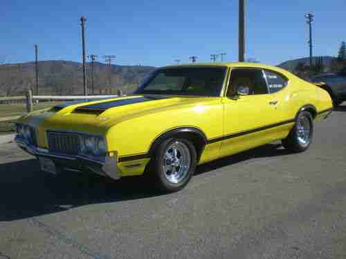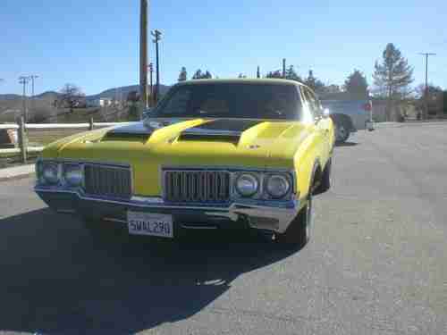 1970 Olds Cutlass 2 dr. Hardtop. All new from front to back with only 3,000 miles. "Pro-Touring" and ready to go! Yellow, 3-stage w/Clear coat. Interior is all new with OEM headliner and seats from 3R Racing and are fully adjustable with 4 point RCI, quick release harness. The Roll Bar is 4 point w/cross bar, and is welded to frame. Heating and Air Conditioning are by Hot Rod Air and work excellent. All new Poly Body Mounts and the body is fully Dynamatted. New, tinted front windshield, dark tinted side and rear glass. All new weather stripping, and rubber. Engine is a 455 CUI, bored .040, all new with double rollar timing chain, fully balanced w/Steel Crank, all Clevite 77 Bearings, Speed Pro Forged ZL 2323F40 Pistons, Melling low pressure high volume oil pump, Edlebrocke Performer Intake W/750 Carb.. Cam is a Comp Cams grind #L270H-10. Heads are "C" Large Valve with Hardend Seats (runs nicely on low-lead fuel. Billet Rail Valve Covers and Ceramic coated Headers with 2 1/2" exhaust. Double Pass Aluminum Radiator with large Mech. Fn. (No Overheating problems)Wiring is all new. Dash is custom aluminum "Race Style" with AutoMeter Phantom white Gauges. (Speedo, Oil Press., Volt meter and temp. Steering Column rebuilt with new bearings and turn signal sw. New Crager Wheels, big and little. Front Suspension all new with powder coated upper and Lower control Arms. New Steering Box.New Springs (Eibach Pro Series) New Disc Brakes and larger front Sway Bar.12 Bolt "O" type Rear end. Richmond 3:42 gears w/bolt in axles and Easton 3 Series Posi-Trac carrier. UMI tube type Four Link Bars. New Drum type rear Brakes. Transmission is a "Mojave Green" 1800 RPM Stall Torque Converter. Performance built TH375 (400 innards) Hardend shafts, HD Clutches, etc. B&M Shifter. Receipts for over $40,000 invested. Sell for $22,500. Ron (661) 332-9361 My loss your gain.