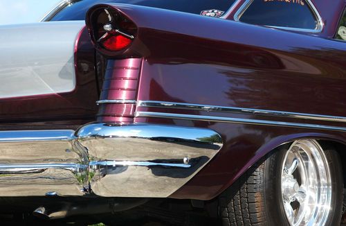 This beauty will turn heads in any crowd. A real driver's car, this classic just begs for the open road. Very powerful, but manageable and quiet for cruising. Too many features to mention including: Custom two-tone paint 1957 Buick grill, Mini Cooper headlights Tri power carb Custom Leather interior Rebuilt motor and transmission Original mileage 53000, 15000 miles on rebuilt engine New tires, brakes, front end, American Racing rims All steel rust-free 4 speed overdrive automatic transmission. Lowered, dual exhaust Factory original am radio converted to new fm radio Frenched-in antenna