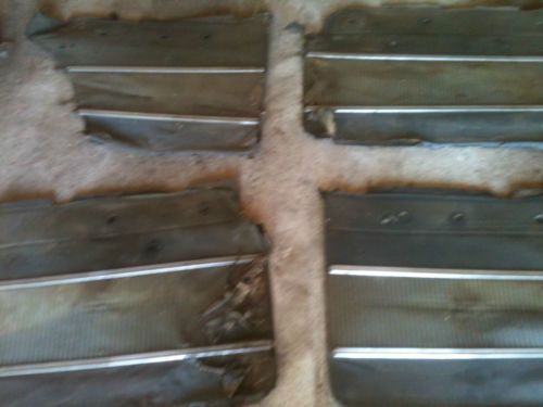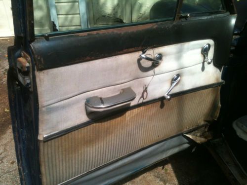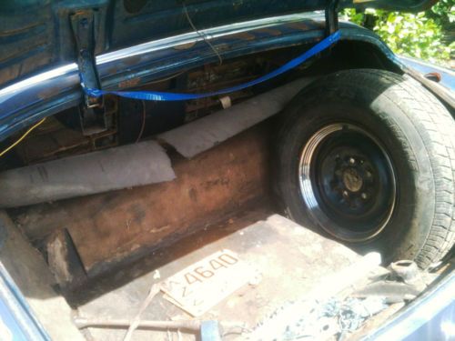Unfortunately, the right rear door glass was left open for an extended period of time, which resulted in the severe deterioration of the rear seat fabric, both rear door trim panels, and the carpet. Additionally, the windshield, window, and door weatherstrips all leak when it rains or you wash it, which also contributed to the deterioration of the interior fabric and rust in the floors and trunk. But, in spite of that, there are only rust holes rather than complete loss of major areas of the floor and trunk panels. But the rocker panels are severely rusted out as are parts of the frame. Most of the side glass is cracked, but it is all there. The majority of the chrome is rusted and pitted.