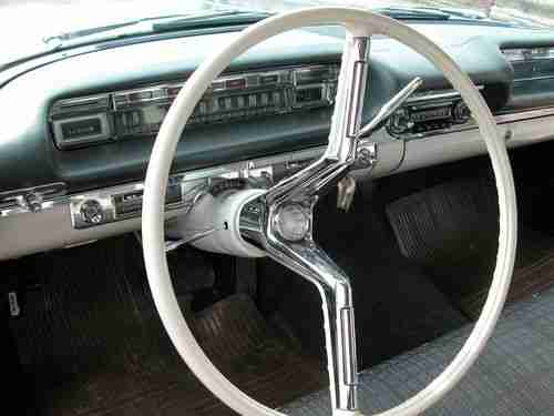 The original interior is really quite nice. The seats and door panels are nice. Very nice headliner and dash with clear guages and nice steering wheel. The interior chrome shines nicely. The carpet is still decent. The matting in the rear storage area is worn. This '59 Olds has the very rare "Trans-portable" radio in the glovebox. A very nice original owner's manual is included.