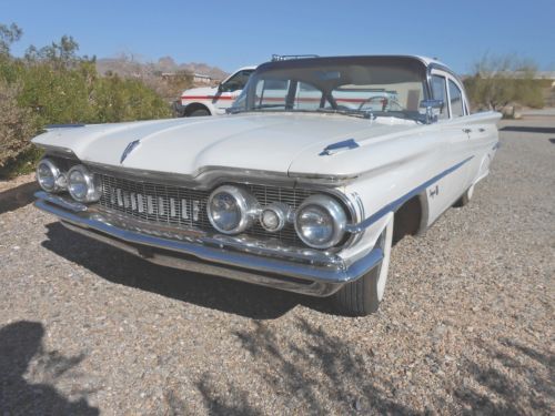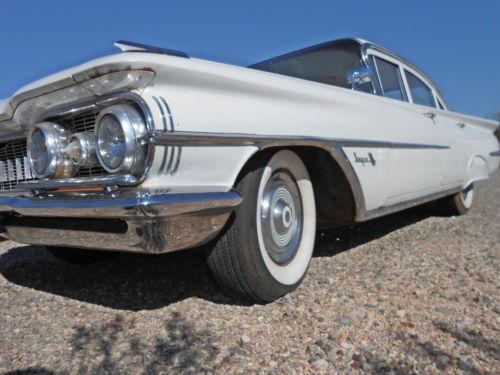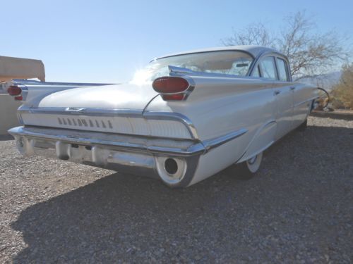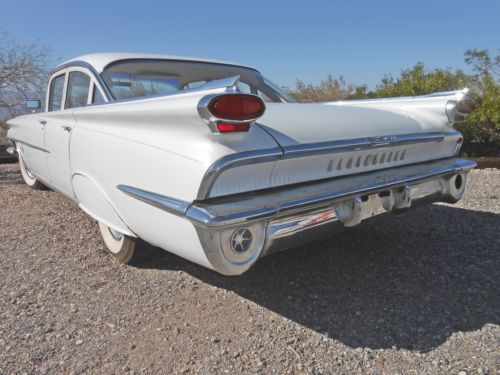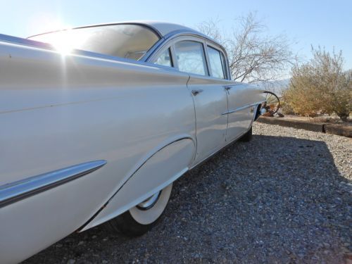 1959 Oldsmobile Super 88. Top of the line Oldsmobile for 1959. 394 cubic inch Rocket V8 engine with 315 horsepower, Auto trans, aftermarket air. Very rare to find one that is un-cut and in such good condition for an older restoration. All original including original radio in all steel dash (that’s right, no cracking vinyl to fix). 98% complete, has a few small rust spots here and there mostly at the bottom of the doors and fenders, but no major cancer. All hinges are tight and all doors close properly. Solid floor pans and trunk. Chrome is in great shape with only the rear bumper showing some flaking. Car comes with some extra parts, such as a 2nd glove box door with lock (the lock is for the one that is missing in the photos), extra tail light lenses, and some of the front fender chrome chevrons. This is a one year only body style that is fun to drive and turns heads everywhere you go. Payment due within 72 hours after end of auction. NO PAYPAL. I accept cash (if picked up in person), Visa, MasterCard, cashiers check, NO PAYPAL. |