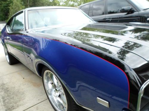 1969 Oldsmobile cutlass supreme coupe! custom two tone paint, buckets seats some husrt 442 options. and factory special chrome exterior package. center console and hurst shifter rebuilt 350 rocket, with mild cam, edelbrock intake, new carb, many high performance parts.. rebuilt auto transmission custom exhaust new suspension all around. she runs and drives like new....... solid solid car, no rust!!!!!!!!!!! doors line perfect, as does the trunk and hood. over $2600 just in wheels and tires. no oil leaks, no fume smell, she is very tight all around, handles at 80mph with ease, no shimmy.... she is a factory AC car, the compressor is out of the car, but easy to put back in. and will come with car. body is laser straight...... this is a no reserve auction.... please only bid if you wish to buy. you wont find another like this.. she can be seen 7 days a week, come drive, you will fall in love with it,as soon as you see her.. I have some more photos, would be happy to send, please feel free to ask as many questions as you like. |