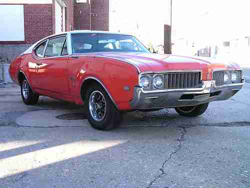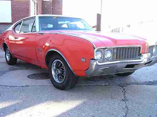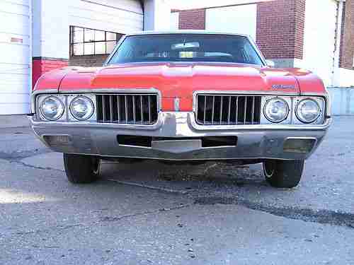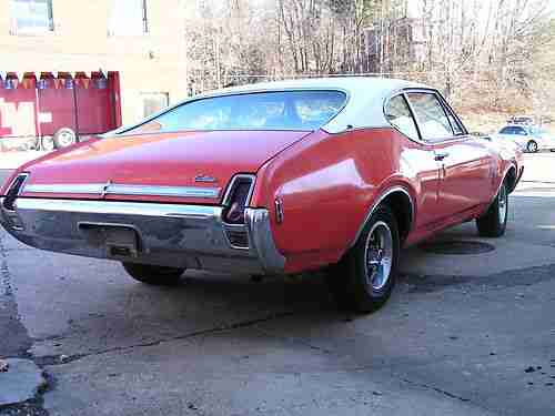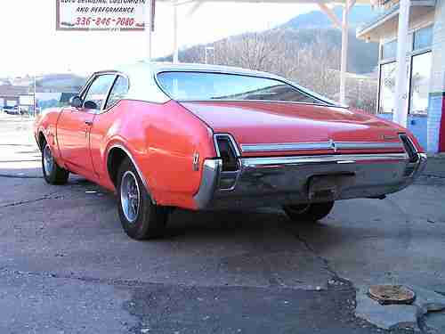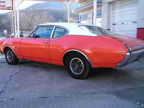 1969 Oldsmobile Cutlass S. Car has the 350 rocket engine and the turbo 350 transmission. Car has white interior, power driver side seat, factory Air Condition car, 12 bolt rear end. The car has all the exterior stainless trim in excellent condition, the bumpers are straight. If you are looking for a great project car you won't find a better one to start with. Floor pans are solid, Small hole in trunk pan.