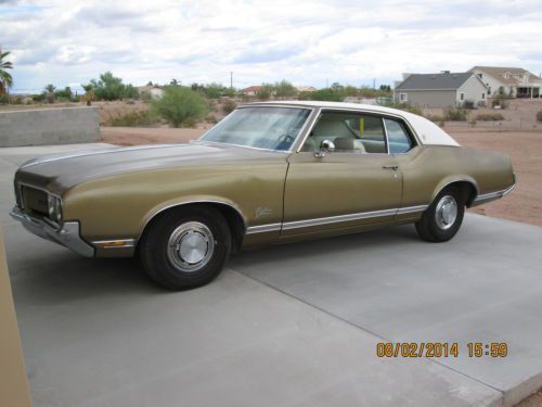 1970 OLDS CUTLASS. "A TRUE SURVIVOR" THIS CAR WAS BOUGHT AND SPENT MOST OF IT'S LIFE IN SAN JOSE CA. A ONE OWNER CAR WELL MAINTAINED AND A DAILY DRIVER FOR AN ELDERY LADY. HEALTH FORCED THE SALE OF CAR. NOW IN APACHE JCT. AZ THIS IS A RUST FREE ORIGINAL CAR, MOSTLY ORIGINAL PAINT EXCEPT FOR SOME TOUCH UPS THROUGH THE YEARS.CRACK FREE DASH AND ORIGINAL RADIO.ORIGINAL GOOD HEAD LINER AND DOOR PANELS.REAR SEAT AND CARPET STILL GOOD. FRONT SEAT AND ARM RESTS NEED RECOVERED. ROCKET 350 WITH 350 TRANS AND 12 BOLT REAR END. WORKING AC, POWER STEERING, POWER BRAKES, 5 GOOD TIRES. THIS IS A DRIVER, ROAD READY. BUY THIS CAR, FLY INTO AZ AND DRIVE IT HOME. OR FOR ALL OF YOU RUST BELT GUYS WITH A 442 THAT NEEDS FLOOR BOARDS, TRUNK FLOORS, FENDERS, DOORS, QUARTERS, HOOD, DECK LID, THINK ABOUT IT, BY THE TIME YOU BUY ALL THAT CHINEESE SHEET METAL AND PAY SOMEONE TO WELD AND ASSEMBLE IT,IF YOU CAN'T DO IT YOUR SELF. YOU WILL HAVE A FORTUNE IN IT AND STILL HAVE A RUST SCALED FRAME TO SAND BLAST AND WILL HAVE DEEP PITS IN IT STILL. JUST BUY THIS RUST FREE SURVIVOR AND BE DONE WITH IT. YOU CAN HAVE YOUR SHIPPER PICK UP CAR AT MY HOUSE, PLENTY OF ROOM FOR SEMI'S CALL FOR MORE DETAILS NO TEXTS PLEASE 480-982-6969 JIM