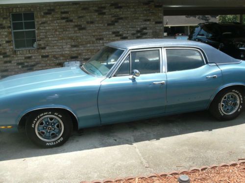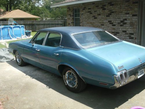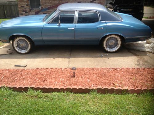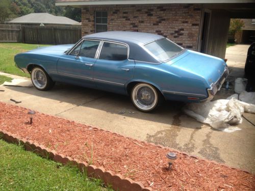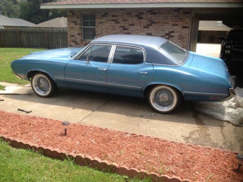 THIS IS MY 1970 OLDSMOBILE CUTLASS RESTORED ONE YEAR AGO. THIS WAS PURCHASED BY MY GRANDFATHER 40 YEARS AGO. THIS CUTLASS HAS BEEN RESTORED WITH ALL NEW PARTS AND HAS THE OLDSMOBILE 307 ENGINE AND COMPLETLY REBUILD. THE PICTURES SHOW TWO SETS OF WHEELS AND TIRES YOU GET BOTH. THE CAR ONLY HAS 49,000 ORIGINAL MILES AND WAS TAKEN CARE BY MY GRANDFATHER. HOWEVER I GOT IT 3 YEARS AGO AND REDONE THE WHOLE CAR INSIDE OUT. THE A/C UNIT AND HOSES FOR THE A/C IS ALL NEW, ENGINE REBUILD WITH ALL NEW PARTS, INTERIOR IS DONE WITH ALL NEW UPHOLSERY, DRIVES LIKE A DREAM, FUEL TANK SENDING UNIT WAS REPLACED AND WORKING AS IT SHOULD. THIS CAR IS READY FOR SHOW AND RIDING. THE 17INCH DAYTONS AND VOGUE TIRES, AND THE CUTLASS WHEELS ALL COME WITH THE PURCHASE. I HAVE THE DAYTONS ON THE CAR NOW BUT YOU CAN GET IT ALL ANY QUESTIONS OR CONCERNS CALL ME 225)235-2530 PAGE.
