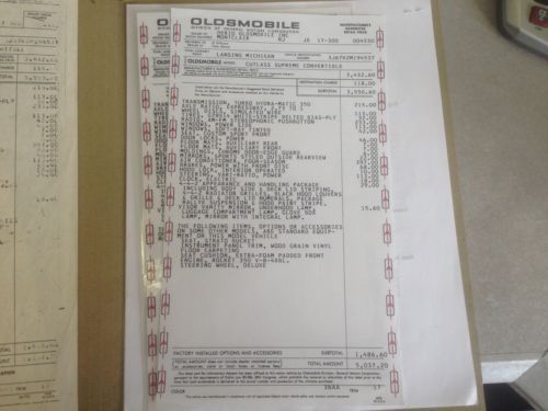 442 that is very original and rare, this car runs and drives like the day it was new, I would have no problem driving this car across country. everything works and the A/C is ice cold, it has power windows and a new power top. this comes wit a lot of paper work from new and some we took photos of like build sheet, window sticker, order sheet and bill of sale that shows that this is a true W-29 442. this car has a lot of original paint and original stripes so it looks good but not perfect, we did get a price to fix the spots of $1350.00 from a resto shop but did not want to get rid of the original paint. the interior is original and in good shape. more info call jim 412-628-8163 |