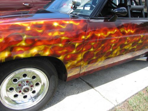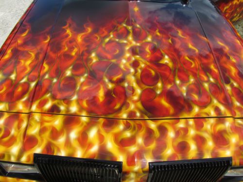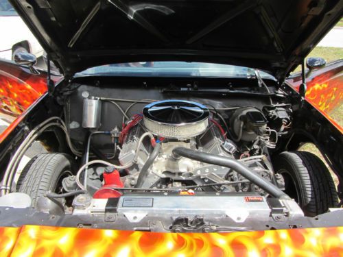 No expenses spared to have this flawless black finish and to display the best work of artist Cris Woloszak. It combines the best of real fire and hot rod tribal hard line flame layout. There is countless hours of custom paintwork into this design. The car was purchased with a top notch chassis, wheel tubs, gauges and just fitted with a balanced and blue printed 355 c.i. just installed after being dyno tuned by Muscle Machine in Eustis, Florida. This car has been put together to drive, have fun and turn heads.
