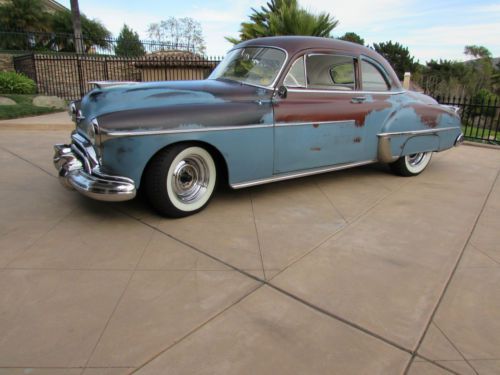 TV show Gas Monkey Garage, Fast and Loud, built this one owner 1950 Oldsmobile Rocket 88 on their show in the old school hot rod tradition. Patina paint was cleared, new upholstery by Sue, new crate engine, new 700 R overdrive transmission, new brakes, shocks, chrome wheels and wide white walls. Its not a restored car , but one built to look old and drive new, and its a TV star!