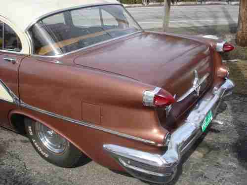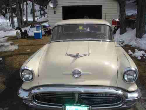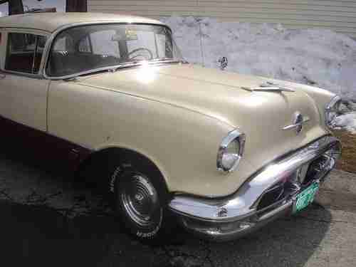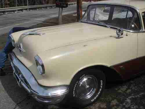 1956 Oldsmobile Supper 88, 4 door, 324 cid, 4 barrel, ALLORIGAINAL. Estimated 130,000 miles, 15,000 on rebuilt engine. The engine that is in the car came from the same year/same car. This car comes with the original factor engine also. PS/PB. The only non original equipment is conversion to electric wipers and electric fuel pump. Radial tires in excellent condition. Only issues are small power steering fluid leak and rear main seal leaks a small amount. Brakes good. EVERYTHINGWORKS but the speedo!!! The center console on the floor in the photos is just sitting their. It is not attached to the car in any way, (no screw holes).
