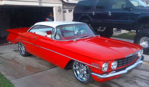nice restored 60 olds , no rust car solid floors etc. all rust was cut out and new metal welded in, only rust was lower fenders. painted hot rod red. all new interior , foam, boards ,etc. trunk done as well, with jack and full matching rim spare. set up with 20/22 wheel combo. original 371 v8 with hydromatic auto tranny, in running order, fresh tune up and new parts. new nos tail lights, all new front/rear window rubbers, doors, trunk,roof rails , etc.Car has had remaining trim installed since pics, trunk emblem,antenna etc. just finished a mild restore and a nice cruiser show car, still can go more for some one else. will hold for shipper after payment . have a nice lot for transport trucks. car is being sold locally and reserve the right to end auction early if sold.