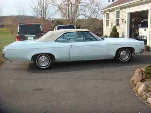 1972 Oldsmobile Delta 88 Royale Convertible, 350 V8. Odometer reads 46k, assuming 146k. Purchased locally 5 years ago and spent 2 years on amateur cosmetic restoration. The car was mechanically sound from previous owner who had about 12 years. The following items replaced right before I purchased: radiator, brakes, shocks, convertible top, and tires. Work I did; tune up, new interior, all seats, carpet, door skins, rewired dash, sanded, primer and repaint, new seat belts. All new door and window weather stripping. Top hydraulics are slow, but works fine, same with all power windows. Exhaust system has a few small holes in it, but not too bad. Has A/C, but needs a recharge. Overall, car runs well, but please remember, this is an amateur job, and I would consider this a 20 footer, it's no show car. Some problem areas in lower quarter panels and trunk. Please note the VIN indicates this car is a 72, but front clip is from a 71. Prior owner had no information on why, but I assume it was in an accident and sourced with a 71. NADA lists (http://www.nadaguides.com/Classic-Cars/1972/Oldsmobile/Delta-88-Royale/2-Door-Convertible/Values) . Please contact me if you have questions