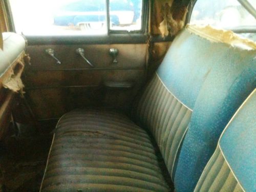 The Crest Blue paint is original, but very worn and weathered. The car does not appear to have ever been wrecked or had any body repair at all. The doors open and shut well, but the driver’s door handle push button does not work.
