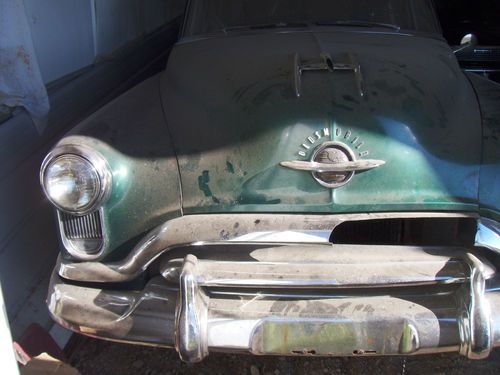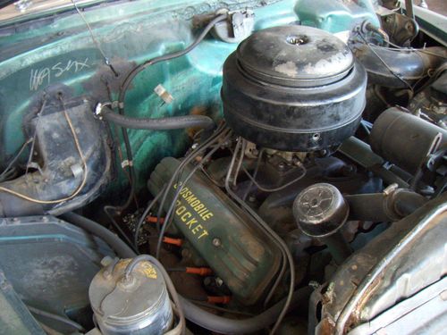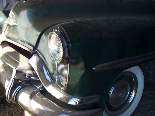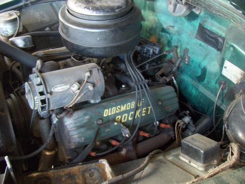Hello, your bidding on a 1951 Olds 98. Car has V-8,6 volt system. Car was purchased to help previous owner finances. Car needs painting, interior, and tires. Engine runs great with no leaks, smokes when first starting. Tranny shifts fine and no leaks, all electrical works. Needs muffler pervious owner cut it out. Car was previous California car then came to Colorado. Car was started three days ago and last driven three months a go to its current covered parking space. Has dent in left fender just below head light and part of grill is broken, broken part in trunk.