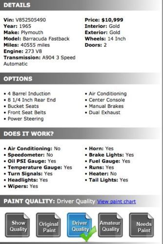 1965 Plymouth Barracuda Fastback 273 V8 A904 3 Speed Ps Ac Dual Exhaust on 2040-cars