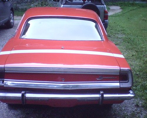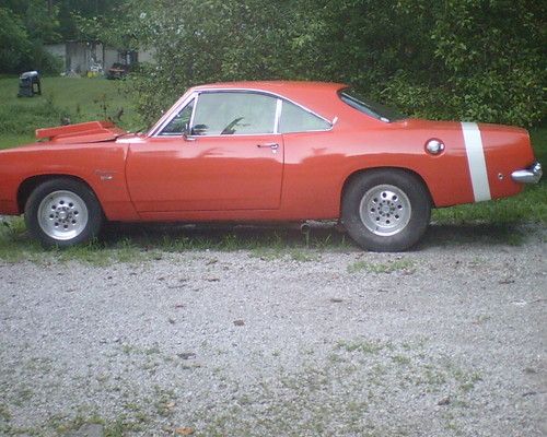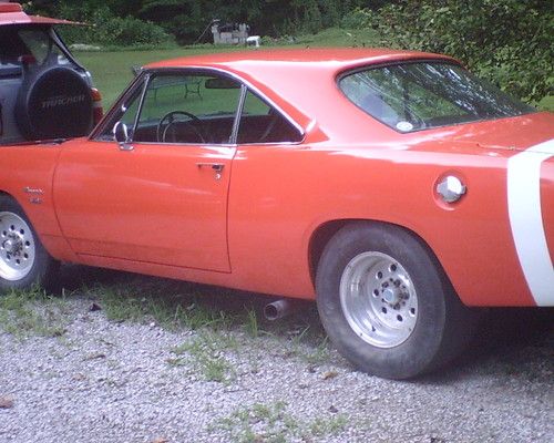 this car has been freshly painted about 4 months ago hemi orange with white stripe on rear the car has a 1970 340 engine it runs very strong has a high rise intake 4 barrel carb has solid lifters racing rockers high volume oil pump someone cut and extended the oil pan has an msd ignition box rev limiter also has some oversized racing cam racing slicks racing rims new dual exhaust has headers it has an automatic transmission with a reverse valve body since i bought the car i have installed a new headliner bought a gas tank and sending unit had to modify the gas tank to make it work with the narrow rearend however it does not leak bought a new auto shifter new fuel pump new radiator fan &clutch fan glove box door panels to go with the car i also purchased a 4- speed transmission it cam out of van just needs the shifter shortened purchased a used 340 flywheel i purchased the shifter linkage bushings & pedal bushings it has pedals it was an original 4-speed i also have the 5 gallon fuel cell for racing and also another racing ful pump new wipers has tach oil pressure water temp fuel gauge works new floor mats the car is in really good shape an runs really well runs strong plenty of power the chrome at the back of the trunk has come dents front bumper has a little surface rust but for the model not bad this car has been taken care of the driverside seat cover needs replaced has no seat belts lights work signals break lights has really good drum braks put a new wheel cylinder on the front passenger side has racing slicks on the back