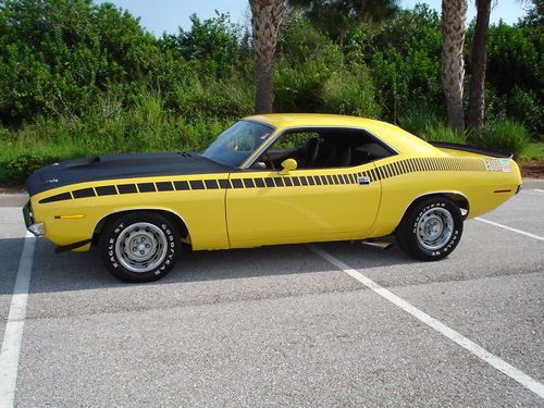 What a CAR!! This is a REAL Plymouth AAR (All American Racing) ‘Cuda dressed in its original “Lemon Twist” (code FY1) yellow color. This car has been done right!
