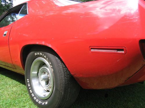 I have a 1970 Cuda it is an original AAR Trans AM. It is all original except front seats. Every piece to this car is here. It is a running & driving car. I found this in a garage about a month ago. The same owner since 1981, the last time it was plated is 1982. I changed the oil and took the gas tank out and cleaned it. Replaced the hose from the tank to fuel pump and it started up. I drove the car around the block and it runs good. Everything on this car works except the clock. The car needs a full restoration. It is rusty especially under the rear of the car. The interior is not bad for a 43 year old car. The car is not perfect in no means. So if your looking for something nice this car is not for you. A perfect car like this will cost you about 120K. can email you more pic. if you need them. car sold as is where is. The car must be paid for before car leaves. You may look at car before you bid, just e-mail me to see car or with any questions. Thank You for looking.