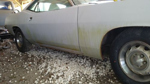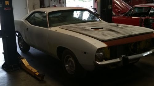 hi, I have a nice 74 cuda with very little rust repair needed. the guy that owned the car drove it to his friends bodyshop to get a new paint job on it over eight years ago. his friend took the trimmings off of the exterior and had the car media blasted and primed. well the guy in the mean time went through a divorce and lost his job. he never got back on track with his car. it has been inside for about eight years and then moved outside for space in the shop. finally he gave the title up so his friend could sell and get his money. I bought the car with intentions of finishing it . but as the story goes, have more important things to take care of. if you have any questions call me at 832-859-9437. thanks for looking really a great car to finish.make a nice 340,440 clone with stripe kit