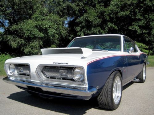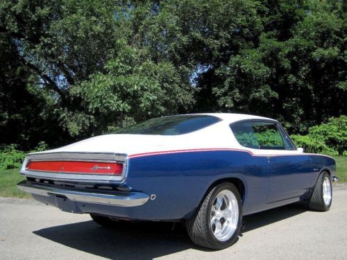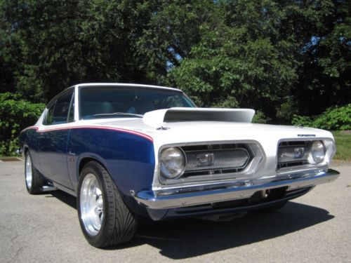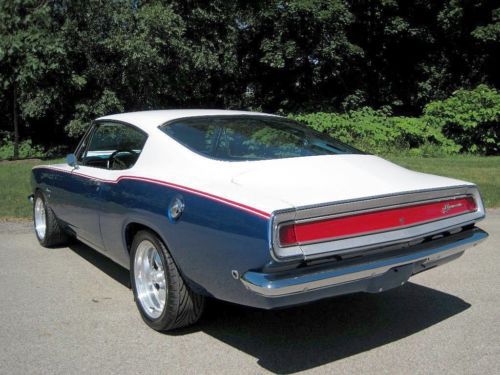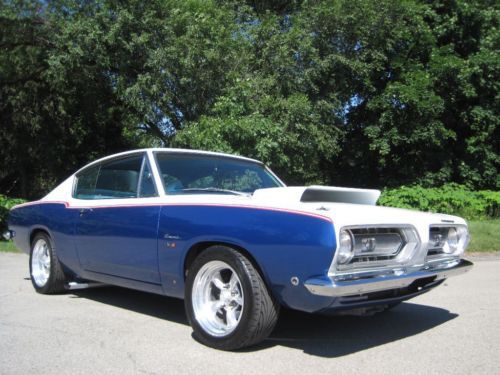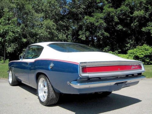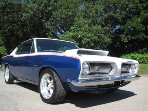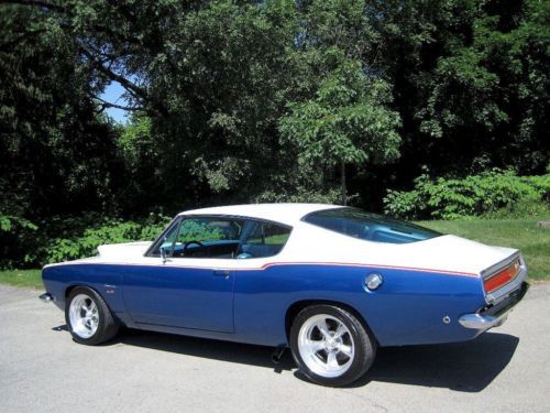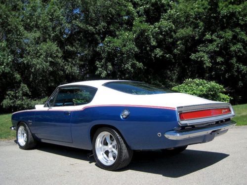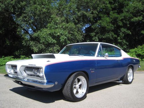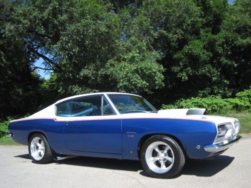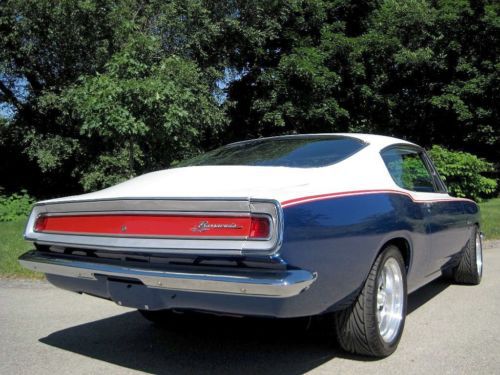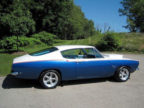 YOU ARE VIEWING A VERY SPECIAL SOX & MARTIN STYLE BARRACUDA CUSTOM WITH 340 BY PETE THOMPSON RACING IN THE LATE 1960's THE SOX & MARTIN BARRACUDA FASTBACKS DOMINATED THE DRAG STRIPS AND TRACKS - THE FASTBACK MODEL WAS THE PERFECT CANDIDATE TO HANDLE THE TORQUE, QUICK ACCELERATION AND WIND RESISTANCE ON THE STRIPS AND TRACKS, GIVEN ITS STRONG CONSTRUCTION, LIGHT WEIGHT AND AERODNAMIC DESIGN - IN THE LATE 1980's A CALIFORNIA BUSINESSMAN AND MOPAR ENTHUSIAST COMMISSIONED A SOUTHERN CALIFORNIA CUSTOM SHOP, TO BUILD HIM A SOX & MARTIN STYLE BARRACUDA FASTBACK - A CAR WITH THE BAD BOY LOOK AND SERIOUS POWER, BUT TUNED TO BE DRIVEABLE ON THE STREET AND TRIPS TO CAR SHOWS - HIS MANDATE FOR THE PROJECT WAS TO BUILD A COST NO OBJECT STATE OF THE ART SHOW CAR - A DESIGN WAS APPROVED AND AN EXCEPTIONAL RUST FREE PLYMOUTH BARRACUDA FASTBACK WAS PURCHASED LOCALLY IN PALM SPRINGS, FROM THE ORIGINAL OWNER - (THE ORIGINAL 1968 DEALER SALES AGREEMENT AND ORIGINAL CALIFORNIA TITLE COPY ARE STILL WITH THE CAR) - WHILE THE BODY, INTERIOR AND MECHANICALS WERE BEING DONE, A STRONG HIGH REVVING MOPAR 340 WAS BEING PREPARED BY PETE THOMPSON RACING ENGINES OF CHULA VISTA - THE VEHICLE WAS PAINTED IN THE RED, WHITE AND BLUE SOX & MARTIN COLORS, WITH COLOR CODED CUSTOM BLUE INTERIOR - SOME MECHANICAL FEATURES INCLUDE BILSTEIN GT3 COIL OVER SUSPENSION, MANUAL SHIFT TORQUEFLITE AUTOMATIC, WILWOOD DISC BRAKES, AMERICAN RACING ALLOY WHEELS WITH PERFORMANCE TIRES, AAR STYLE SIDE TRUMPET EXHAUST, UNDER HOOD PERFORMANCE COMPONENTS, ETC. - IN 1989, THE OWNER MET WITH THE TEAM WHO BUILT HIS CAR - HE WAS ECSTATIC, WHEN HE SAW AND TOOK DELIVERY OF HIS ONE OF A KIND MOPAR - HE NAMED IT THE "CALIFORNIA 'CUDA" - THIS IS THAT CAR - IN 2012 THE VEHICLE WAS PURCHASED AND BROUGHT TO WESTMORELAND, PENNSYLVANIA WHERE IT WAS PROFESSIONALLY RESTORED TO ITS ORIGINAL CONDITION AND SPECS - THE CAR IS AMAZING - WORDS CANNOT DESCRIBE THE JUBILATION AND SIZE OF THE CROWDS THAT SURROUND THIS VEHICLE ALL DAY AT MOPAR EVENTS AND CLASSIC CAR SHOWS - THIS OUTSTANDING VEHICLE IS PART OF A COLLECTION OF PERFORMANCE CARS AND RARE CLASSICS CARS, NOW LISTED FOR SALE ON www.raremuscle.com - PRICE REDUCED FOR EBAY AUCTION - I WILL BE HAPPY TO DISCUSS THE VEHICLE FURTHER OR PROVIDE INFORMATION ON FINANCING OR DELIVERY BY ENCLOSED TRANSPORTER - (412) 736-3600