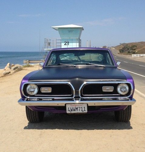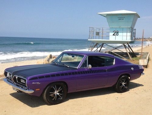 Stunning Plum-Crazy Purple 1969 Plymouth Barracuda with numbers matching 318 V8. This car turns heads and commands attention everywhere it is driven. It boasts a new interior, paint job, wheels and tires. Come by and see the nicest 1969 Barracuda in Southern California. This a one of a kind great American muscle car. Please call 760.213.7311 for details.