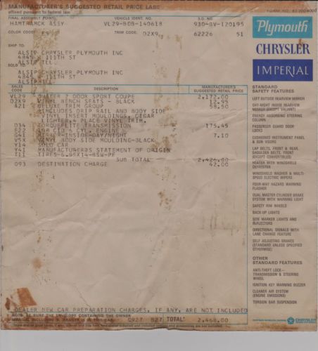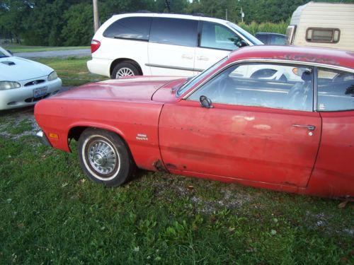 1970 Plymouth Duster. Factory Red. Clear Illinois title, 2 sets of keys, and the original sale bill from the dealership. Two owner vehicle. 1st owner left it to her daughter when she passed away. The daughter parked it. This car has been sitting for over 20 years. Has a slant 6 engine. Automatic transmission. I replaced the starter relay, points, and plugs. Engine runs and transmission shifts ok. The car is 99% complete. Missing the battery tray and window washer jug. The car is very rusty, but restorable. The bumpers are in great shape. All glass is good. Body is rough, floor pans are bad along with the trunk pan. Rear frame rails are good. Passenger front frame rail is good. Drivers front frame rail is bad and needs replaced. Still has the factory jack and spare in the trunk. Has the hard to find small bolt pattern wheels, grille is in good shape, all window trim is in good shape, trunk lid is nice, roof is solid, etc... This car should be restored, but could be used for parts. It has 61,615 original miles. This car is not road ready and will need to be towed. I am asking $1000.00 firm! For questions Please call or text Keith at 618-697-4897. Located in Southern Illinois (Jonesboro). This car would be a good father son project, or It could also be used as a parts car. IT HAS A LOT OF VERY NICE PARTS! This car needs restored, or could be used for parts. LOCAL PICKUP ONLY! THIS CAR WILL NEED TO BE TOWED!