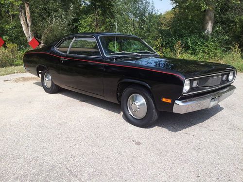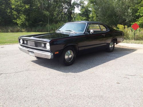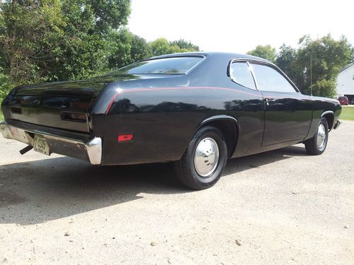 This duster is a very solid original driver quality car. This car has been owned by the same family since new. I have all of the original paper work that goes with the car including, original window sticker, invoice, and receipt. The car was originally purchased in Montgomery Alabama and spent the majority of its time there. The car has been in Wisconsin for the last 25 years in storage. The interior is clean however, it has a small crack in the dash and the carpet has faded to a brownish color. The body is also in nice shape (straight, solid) it was painted in the late 80s and the paint is holding up nicely. The floors, frame rails and trunk are also solid. Mechanically the car runs, steers, and stops great. If you have any questions feel free to ask. Thanks