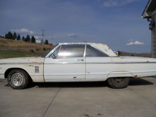 2 door barn find. This Fury has been sitting for a while. Some rust in rear quarters (see photos) and missing radiator (see photos). The engine turns over and wants to start. It appears to be the original 383 Commando engine. The car is equipped with power steering and power brakes, although the power steering pump is missing. The Fury comes with new NAPA brake shoes and extra tail light lenses (see photo of trunk).