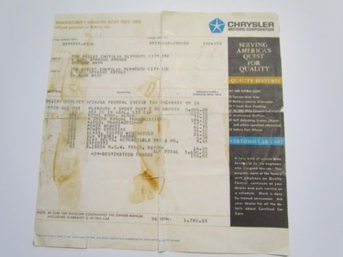 1966 Plymouth Sport Fury 383, 4 Speed, Original Window Sticker on 2040-cars