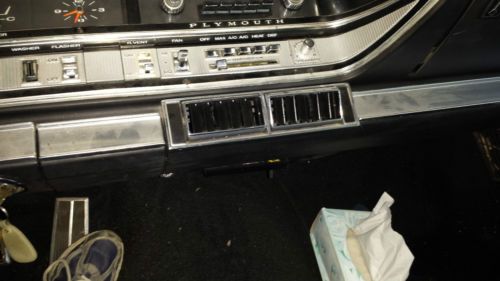 Here is my 1967 Plymouth Sport Fury. We are buying a new house and I need down payment money. Plus a baby coming in January. I will not give the car away, if she does not sell, I will keep her. Her name is Olivia. Olivia has power Windows, seat, Cruise control, and AM/FM Trans Radio. AC is ice cold, power seat works perfect. Radio and Cruise all work. The power Windows are stuck except the passenger side door. The man I got the car from said the windows all worked when he parked it three years ago. They all draw juice so I am guessing they just need unstuck. She does not leak or burn any oil at all and will drive anywhere you need to go. No mechanical problems at all, except the heater core leaked this summer, and I bypassed it. It will need replaced. Miles are original. Car was repainted sometime in the late 90s. Tires are brand new Coker BF Goodrich Vintage Bias ply. G78-14 Hubcaps are original to the car. Only interior flaws on car is a crack in the dash, Pictured, and a small hole in the drivers seat that is also pictured. Vinyl top is not perfect but will last. Paint is flaking on trunk and a small spot on hood. Chrome is all in fantastic shape. One tail light chrome missing. I may have a dual snorkle air cleaner by the end of the auction. I have original spare tire and wheel that will go with the car. Frame and floor are solid as well as trunk. I have a link added of a video of the car running and a walk around. In the pictures it is freezing rain and snow coming down that is why the windows are wet. I did not detail anything or even clean the car up because of the weather. The carpet is actually like new under the little bit of dirt. Trunk was not cleaned or engine either. I do have lots of other pictures I can send on Text Just ask