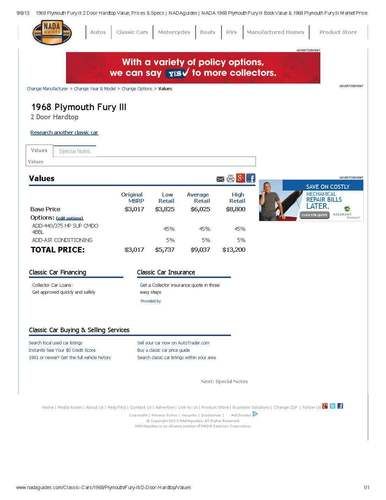 Low mileage super Plymouth Fury III.
