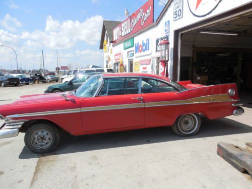 THIS IS A 1959 PLYMOUTH; NOT THE CORRECT MOTOR;; I NEED HELP HERE; WHAT KIND OF PLYMOUTH IS IT; I HAVE HAD IT HERE FOR QUITE A WHILE WITH THE INTENTION OF MAKING A UNUSUAL STREETROD; IT DOES NOT LOOK LIKE I AM GOING TO GET IT DONE; VERY SOLID CAR; VERY SOLID FLOORS NOT RUNNING, NOT DRIVING; NEEDS TOTAL RESTORATION. WHAT U SEE IN THE PIX IS WHAT I HAVE FOR IT; JEFF 218-464-2821 I ALSO CAN HELP ARRANGE REASONABLE SHIPPING |