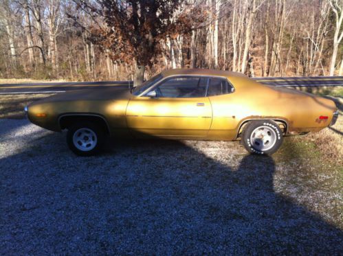 1972 Plymouth Satellite project car with nice patina. Complete car minus the engine, trans is still in the car, original paint all over except drivers side quarter panel, all the glass is good, doors still shut good, and stays dry inside. I do not have a title for this car. Floors and trunk pan have some rust but not rotted out, Will add more pics soon, Feel free to ask questions. Thanks.