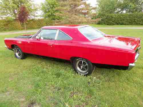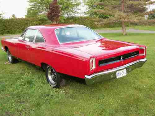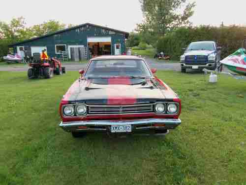 hi im selling my 1969 plymouth roadrunner 383 magnum PROJECT CAR!!! this car run's well motor is good this car need work it needs both frame rails to be replaced i have both new ones with all the perches on them there 2nd hand but in great shape it also need left frount rail changed i do not have it this car need's rocker panel to be instaled i have them new in the bow also it needs a new trunk & full floor pan i have the rear left pan new in the box a have the set of 4 floor braces new in the box also the car was sitting for 25 years in a shed so its in need of new break lines and gas lines also i have taken out one rear frame rail so its ready to be put back in but need the trunk pan and new cross member to go ahead with finishing that job i will put the rail back on the car so it can be moved asap when sold this car has a good interier dash not cracked head liner good seats good only small rip in seam of back seat two spot see pic's other than that all good crome on car is very clean one small rust spot frount bumper it has magnum 500 rims wheels comes with ownership fender tag is on the car also the car is all orignal parts are all there car is still as seen in pic's just took rear end out to start on rails sadly no time to finish this project so reserve is $7500 its what i have in it and just want $ back any questions e mail or call me 613 577 3400 tks brandon winner must pay in full with in 7 days with a bank transfer and is to arrange all shipping& costs or pick up in person happy bidding car is in l'orignal ont k0b1k0