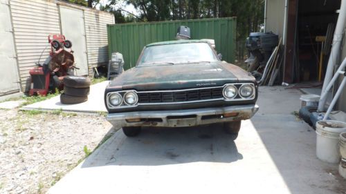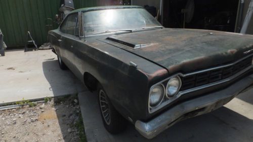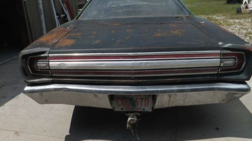 1968 PLYMOUTH ROAD RUNNER 2 DOOR. NOT MATCHING NUMBERS. CAR IS READY FOR RESTORATION. CAR HAS NOT BEEN STARTED IN YEARS AND I HAVE NOT DONE A COMPRESSION CHECK. BODY AND INTERIOR IS PRETTY COMPLETE ALTHOUGH THE INTERIOR IS ROUGH. DASH APPEARS TO BE INTACT. CAR HAS RUST BUT IS NOT RUSTING AWAY. I'M NOT 100% SURE THAT THE ENGINE IS A 440 BUT IS NOT ORIGINAL. FLORIDA TITLE. LOCATION: CENTRAL FLORIDA. I BELEIVE ALL OF THE BODY PARTS ARE ORIGINAL. I WILL TRY AND ANSWER ANY QUESTION YOU MAY HAVE.