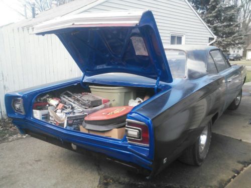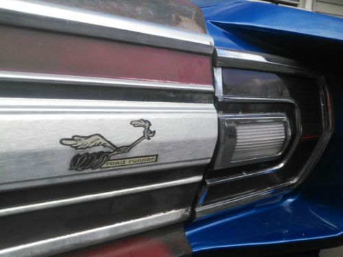 UP FOR AUCTION 1968 ROAD RUNNER 383 4 SPEED FACTORY. LOTS OF WORK DONE! HUDGE LIST INCLUDES 1. AMD FULL QUARTERS & REAR WINDOW FILLER installed 2. AMD FRONT FENDERS installed 3. AMD COMPLETE FLOOR installed 4. AMD FOUR SPEED HUMP installed 5. AMD FRONT INNER WHEEL WELLS installed 6. AMD TRUNK EXTENTIONS installed 7. AMD OUTER REAR WHEEL WELL HOUSINGS installed 8. AMD REAR TAIL PANNEL installed 9. AIR GRABBER HOOD & CLEANNER. 10. FACTORY 8 3/4 SURE-GRIP POSI REAR 11. SUPER CLEAN DOORS! 12. ALL JAMS AND UNDERSIDE PAINTED 2001 B5 BLUE EXCEPT HOOD 13. FRAME TIES installed 14. COMES WITH 1971 B BODY 440 HP & 833 B BODY 4 SPEED 15. NEW YEAR ONE HEADLINER & CARPET installed 16. NICE FACTORY DASH & MANUAL STEERING installed 17. 4 SPEED PEDALS installed STILL NEEDS FINISHED. OVER $7000.00 IN BODY SHOP CHARGES. Lots of parts included. Listed local may end early if reserve not meet any questions contact at: four 4 0 - two 4 2 - five 0 0 0 thanks for looking. |