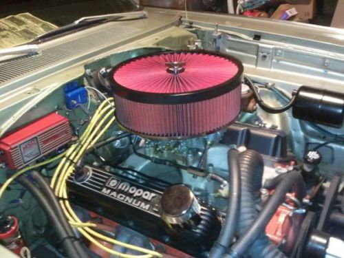 On Apr-21-14 at 17:57:48 PDT, seller added the following information: Part # mopar performance crate motor #p5007647 435 hp 457 lbs of torque,single plane m1 intake,8 quart center sump oil pan,513 roller cam,9.0.1 compression,magnum heads stainless valves all came with motor from mopar performance,also has 4;10 gears and 10 gallon aluminum fuel cell,all stainless steel brake lines ,car also has original alligator vinyl top,over 25 k just in engine and drivetrain,professionally back halfed,ladder bars,frame connectors,car hooks and goes straight, On Apr-22-14 at 22:16:37 PDT, seller added the following information: Paint is light green org color,inside is excellent also light green and dark green, motor and drivetrain have about 1000 miles or less only driven to car shows,cruise nights, also has all new tires,front are drag tires as well as back, mickey thompsom ,power brakes,power steering ,ssbc front extra light weight disc conversion kit,and electric vacuum pump,pro comp water pump,aluminum radiator,back up electric fan, 1/2 inch wheel studs |