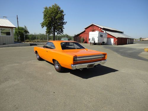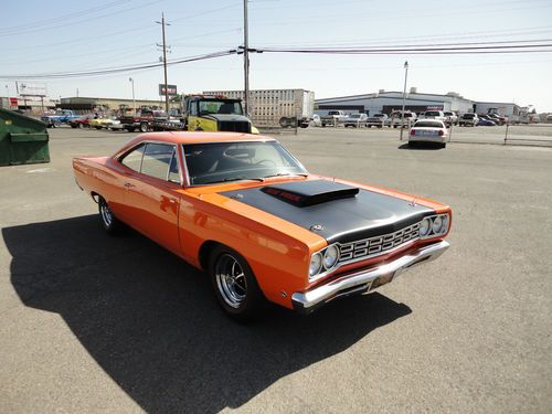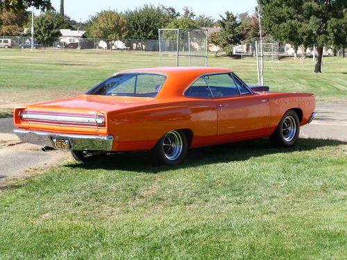 HERE IS A GREAT 1968 ROAD RUNNER ORIGINAL 383 MASSAGED TO 403 101/2 TO 1 COMPRESSION, 516 CLOSED HEADS, 208 INTAKE AND 194 EXHAUST STAINLES, M.P. VALVES AND COMP CAM LIFTERS WITH SPRINGS RETAINERS WITH KEEPERS, TRUE ROLLER TIMING CHAIN, SIX PAC CARBURATOR SET UP FROM THE 70S, MSD BILLITT DISTRIBUTOR WITH 6AL, 833 4 SPEED WITH BIG YOKES AND 410 POSI IN 489 8 3/4 HOUSING, POWER STEERING, POWER DISC BRAKES, FACTORY TACK. SHOW WINNER CAR, THIS CAR RUNS AND DRIVES GREAT, THIS CAR HAS NOT SEEN WATER FOR THE LAST 20 YEARS, NO RUST AT ALL. NADA CLASSIC CARS BLUE BOOK PRICE IS 50K PLUS. YOU ARE WELCOME TO COME AND SEE THIS BEAUTIFUL CALIFORNIA CAR. WILL HELP SHIP IT ANYWHERE IN THE WORLD (I HOPE IT STAYS IN THE USA). OTHOMETER READS 04183 SECOND TRIP, BUT ONLY HAS 2500 MILES SINCE IT WAS ALL REDONE. I OWNED THIS CAR FOR THE LAST 20 YEARS, ORIGINAL ENGINE AND TRANSMISSION. MATCHING NUMBERS.