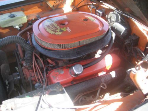 Original 383 Magnum Air Grabber V8 Factory Automatic Transmission Runs And Drives Good - FIRST TIME OFFERED FAMILY OWNED BARD FIND! Vin # RM23H9E168408 Mileage: 51,723 (Original Miles) EXTERIOR: Factory Color (Code K) Go Mango Orange Re-Paint (Done Years Ago) - Roadrunner 2 Dr Hardtop - Original Chrysler Sheetmetal And Trim - Driver And Passenger Sport Mirrors - Original Front And Rear Chrome Bumpers (Shiny But Tarnished On Top Surfaces) - Factory V21 Functional Air Grabber Hood Option - Roadrunner Beep Beep Horn - Factory Clear Glass - Original 14" Rally Wheels W/Center Caps - P205/75R14 Replacement Tires (Good Tread All The Way Around) SOLID Body And Paint.....Does Show Its Age Of Course Seeing It Is 45 Years Old, Has Rust Starting On Bottom Of Lower Rear Panel Between Door And Fender BUT Still With All The Original Factory Sheetmetal, Chrome Is Tarnished On Top Surfaces But Straight And Original. Has An Older Re-Paint And Faded (See Pics). This Road Runner Is All There And Looks To Be Solid Top To Bottom. IS ONE OF THOSE BARN FINDS THAT ARE OUT THERE BUT HARD TO COME ACROSS! INTERIOR: Factory Original Black Vinyl Seating And Trim - Front Bucket Seats W/Headrest Option - Original Carpet / Panels / Headliner / Wood Trim Steering Wheel - Funtional Under Dash Air Grabber Hood Lever - Optional Upper Front Shoulder Seat Belts - Original Dash And Gauges In Working Condition (Original AM Radio Is Missing) - Factory Center Console W/Floor Shifter FACTORY ORIGINAL Interior And Trim.....Shows It's Age With Tears In Lower Front Drivers Seat And Carpet (See Pics). BUT Overall Is All There And Everything In Working Order Including The Under Dash Functional Hood Option. THIS ROAD RUNNER RUNS AND DRIVES GOOD! FACTORY PRODUCTION CODES: AO4 Basic Radio Group AO6 Sport Group Pkg A14 Spring Pkg W/Vinyl Roof Delete A48 Dress Up Pkg A86 Interior Decor Pkg B61 Standard Brake Pkg C13 Front Shoulder Belts C55 Bucket Seats W/Adjustable Head Rests C96 Trunk Pkg D36 A 727 3 Speed Automatic Transmission D56 3:54 Posi Rear Axle Ratio D63 383 4brrl Magnum V8 (335HP) G21 Clear Glass / No Air Conditioning Option H11 Heater L71 Door Ajar Lighting N41 Dual Exhaust R11 AM Radio (Missing) S31 Front Sway Bar S77 Power Steering S81 Wood Premium Steering Wheel T85 F70-14 Fiberglass Whitewall Tires (Been Replaced) V21 Performance Hood W21 Rally 14" Wheels ENGINE: 383 Magnum 4 Brrl V8 (335hp) - Factory Grabber Hood Air Cleaner - Heavy Duty Engine Cooling - Factory Dual Exhaust TRANSMISSION: A 727 Tourqe Flite 3 Speed Automatic - 3:53 Posi Traction Rear Axle RUNS AND DRIVES GOOD 51K ORIGINAL MILES HARD TO FIND FAMILY OWNED BARN FIND **As With Any Vehicle Of This Age And Miles.....It Is Not Perfect And Normal Wear From Driving And Use, But Is In SOLID Condition. Please have your funds ready if you are the winning bidder, if you have any negative feedback, please email before you bid. We will contact the winning bidder by email after auctions end to confirm and make arrangements to finalize the deal. We can accept initial $500 deposit through PayPal, final balance MUST be paid by cashier check OR certified funds / money wire transfer. THANK YOU! **$500 Deposit Due Within 24 Hrs Of Auctions End **Remaining Balance Due Within 7 Days Of Auctions End Any Questions OR Need More Details Please Call Garry (616) 337-0638 |