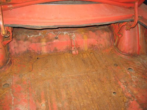 ARE TWO NEW FRONT FULL FLOOR PANS. THE TRUNK ALSO WILL NEED SOME REPLACEMENT BUT NOT BAD AT ALL. ALSO TYPICAL