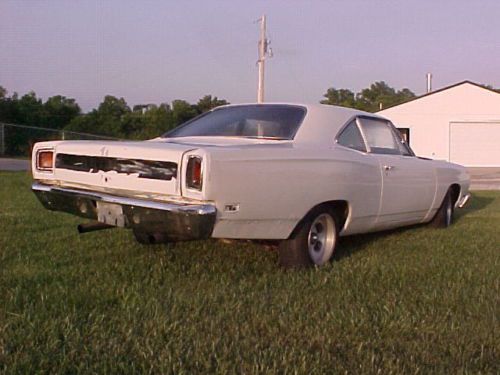 FOR SALE 1969 Plymouth road runner CAR, factory 383 BIG BLOCK 4 SPEED CAR. but now 1967 440 steel crank, 4 speed, 8 3/4 rear diff. barn find. YES THE fender tag on the car. BEEN SITTING FOR A LONG TIME, selling for a friend clear title. white BODY & BLUE INTERIOR.but factory a blue body car. Bench SEAT. DRUM BRAKES ON ALL 4 CORNERS. this is a great start for a father & son project. the rear lower side panels need repair {{{{{{{{ SEE PICS }}}}}}} all of the glass is good. THIS ROADRUNNER RUNS & YARD DRIVES ONLY need to have every thing check before driving down the street. bumpers look good for a driver. REAR FRAMES have no rust holes. front frame look good. doors look good. needs a trunk pan. HOOD LOOKS GOOD. yes the car is missing some parts. GRILL IN GOOD SHAPE. ALL OF THE WINDOW CHROME is on the car . SEAT FRAMES ARE THERE FRONT & REAR. yes we have the build sheet. THIS CAR IS SOLD AS-IS. NO REFUNDS. BUYER TO PAY FOR ALL SHIPPING COST, CAN STORE FOR 20 DAYS AT NO CHARGE FROM END OF AUCTION. BUT AFTER THAT IT IS $25.00 A DAY STORAGE. A NON REFUNDABLE DEPOSIT OF $500 DUE IN 3 DAYS OF END OF AUCTION. BALANCE IS DUE IN 7 DAYS OF END OF AUCTION. CAR & TITLE WILL NOT BE RELEASED UNTILL ALL FUNDS CLEAR MY BANK SOME TIMES OUT OF STATE MONEY ORDERS, CHECKS TAKE 10 DAYS TO CLEAR. WILL TAKE WIRE TRANSFER ALSO. YOU CAN ALSO CALL ME AT 816-918-3319 THANK YOU RON THE