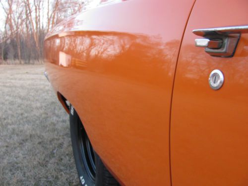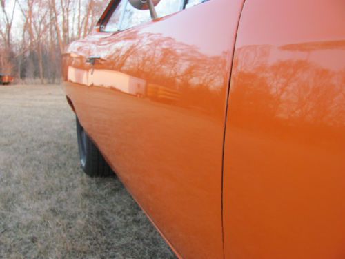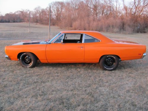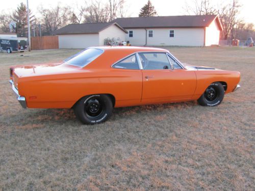 Up for auction is a beautiful 69 Plymouth Roadrunner. It is a REAL RM21 Roadrunner NOT a clone. This is a true muscle car and there aren't many of these left out there. This car was built to be driven and taken to the occasional local show. It is a nice car, but it is not a perfect trailer queen. It has the original 69 383 HP motor. The motor was bored .030 and put back to stock specs. It has an 833 4 speed trans with brand new flywheel and clutch. The rear end is an 8 3/4 with 3.91 gears. All the brakes are new and all the brake lines are new correct reproductions from inline tube. It has new shocks all the way around with air shocks out back. It has factory mopar 15x7 steel wheels and BFG radials with 275s out back to give it that A12 muscle look. It comes with dog dish caps as well. The body is nice and straight and is rust free. It was painted the correct vitamin C orange in PPG base/clear and has a beautiful shine. I would say the paint is an 8 out of 10, with 10 being perfect. All the weatherstripping is new and the windshield is new. The interior is nice and is mostly new. It has new carpet, new seat upholstery, new headliner, and new dash pad. It also has a factory tach, which was a rare option. If you've been looking for a nice roadrunner or mopar to take out to the cruises, here is your chance! Don't miss out! There will be a $1000 deposit due via paypal within 24 hrs of auction end. Thanks
